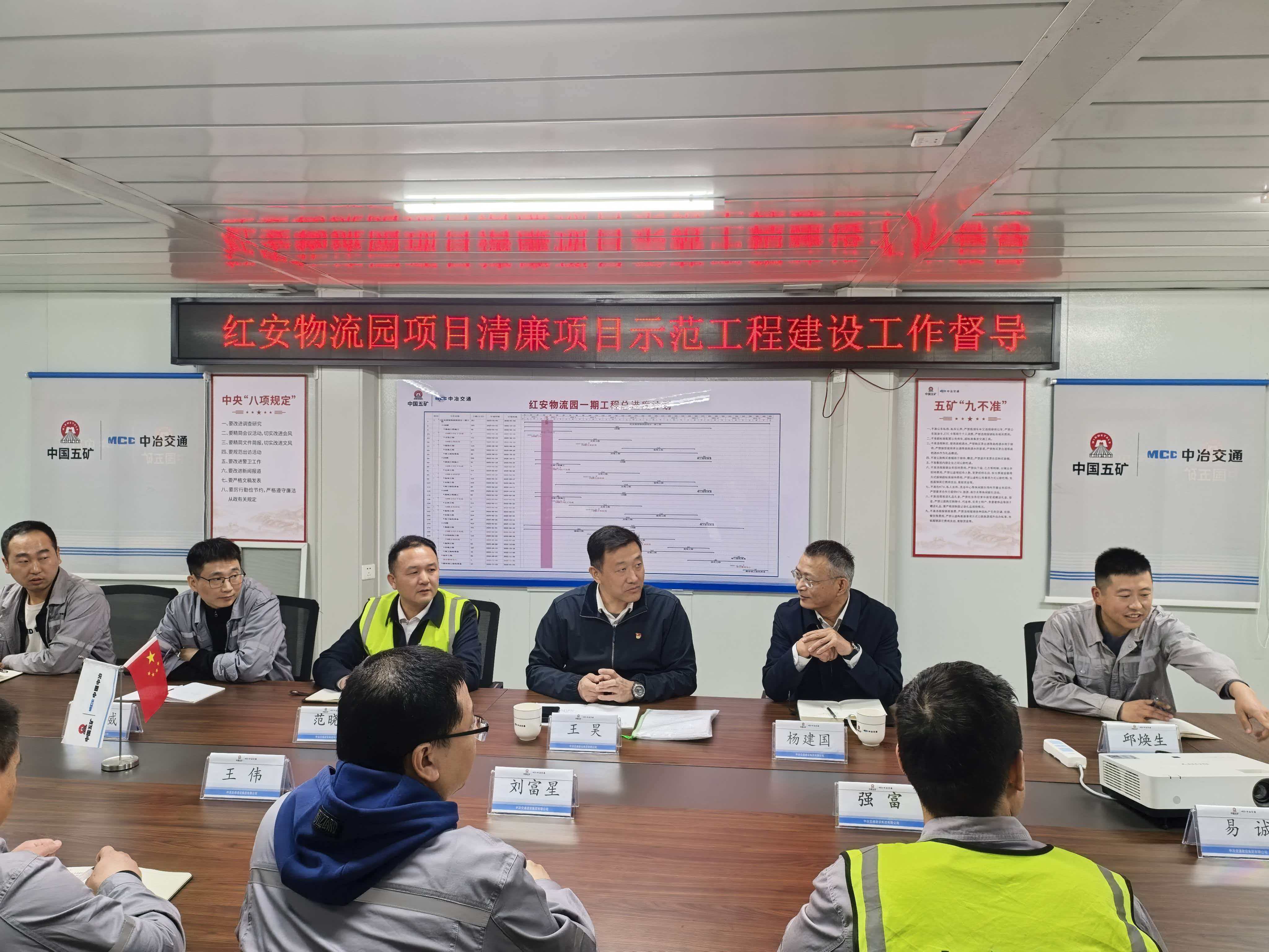 王昊在检查中对项目廉洁文化生态涵养、廉洁责任落实和廉洁制度建设等问题进行了深入细致的督导检查。实地察看项目驻地和施工现场“四一两书”的实施情况,查阅廉政教育“三必须”的执行和廉洁责任“五书”签订情况,重点检查了“三手册一清单”的有关要求,项目班子和各部门廉政职责制定和防控要点的落实资料,同时细心指出项目在推进清廉项目建设工作上存在的不足。王昊强调,红安物流园二期项目作为公司首批清廉项目建设试点,要以清廉项目创建为抓手,学习兄弟单位和项目的典型经验,统筹推进安全、履约、质量、经营等各项工作,实现全方位达标。对项目下一步深化清廉项目建设、强化全过程监督、落实廉洁责任和防控措施,王昊也提出了针对性意见。